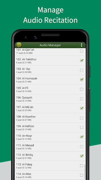 - 각 수라에서 압둘라 바스파르의 암송을 들어보십시오.